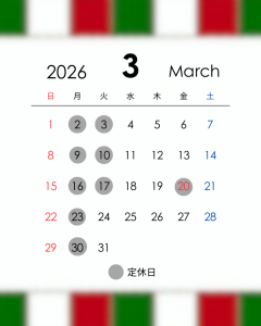 3月定休日のご案内