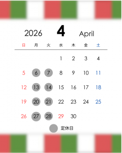 4月定休日のご案内