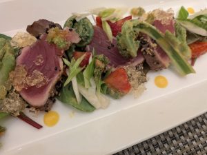 ホーム > キッチンスタッフ > ホワイトデーコース! 2026/03/06 ピンパシェフです。 来週はホワイトデー! 12日~15日まで(14日は貸切の為無し)ディナーにて 特別コースをお出しします。😋😋😋 春を感じさせる野菜や山菜を使った前菜をご紹介! キハダマグロをシチリア風にゴマをまとわせて表面を焼き中身はレア状態。 そこにほろ苦い群馬の山菜たちをオレンジとブラッドオレンジで味付け、 濃縮コンソメジュレで召し上がっていただく前菜に仕立てました! ご予約をお待ちしています! B! LINEへ送る - キッチンスタッフ