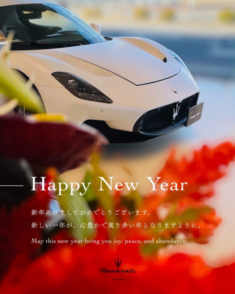 ホーム > Ariel > 【謹賀新年】 本日より営業再開 2026/01/07 新年あけましておめでとうございます。 旧年中は格別のお引き立てを賜り、 誠にありがとうございました。 2026年も皆様にとって 何事もウマくいく一年となりますよう 願っております。 マセラティ群馬は、 本日1月7日より通常営業を 再開いたしました。 本年も変わらぬご愛顧のほど、 よろしくお願い申し上げます。 B! LINEへ送る - Ariel