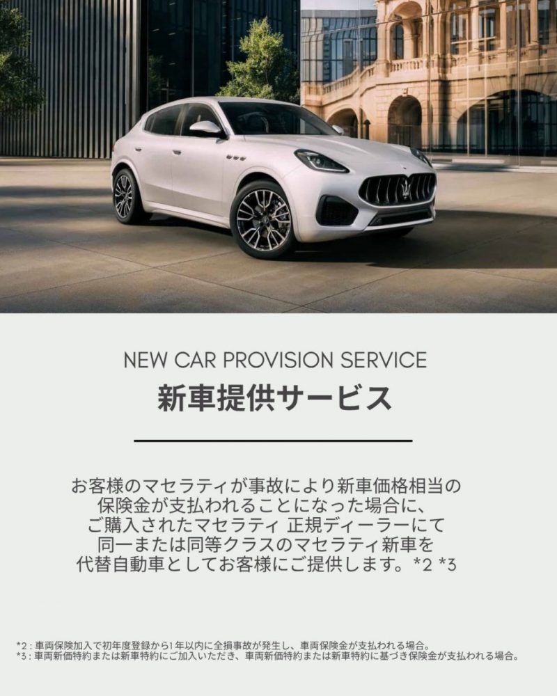 ・新車提供サービス:万が一の際も、マセラティライフを途切れさせません。