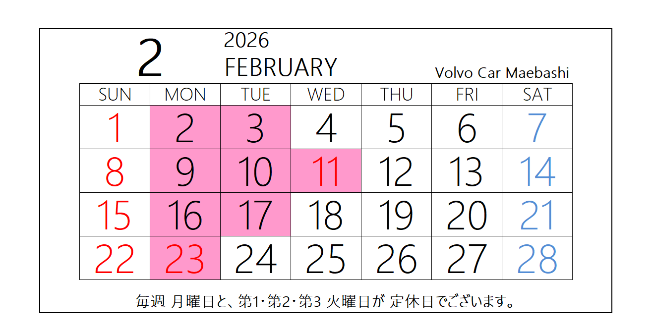 2月の営業日・休業日のお知らせ