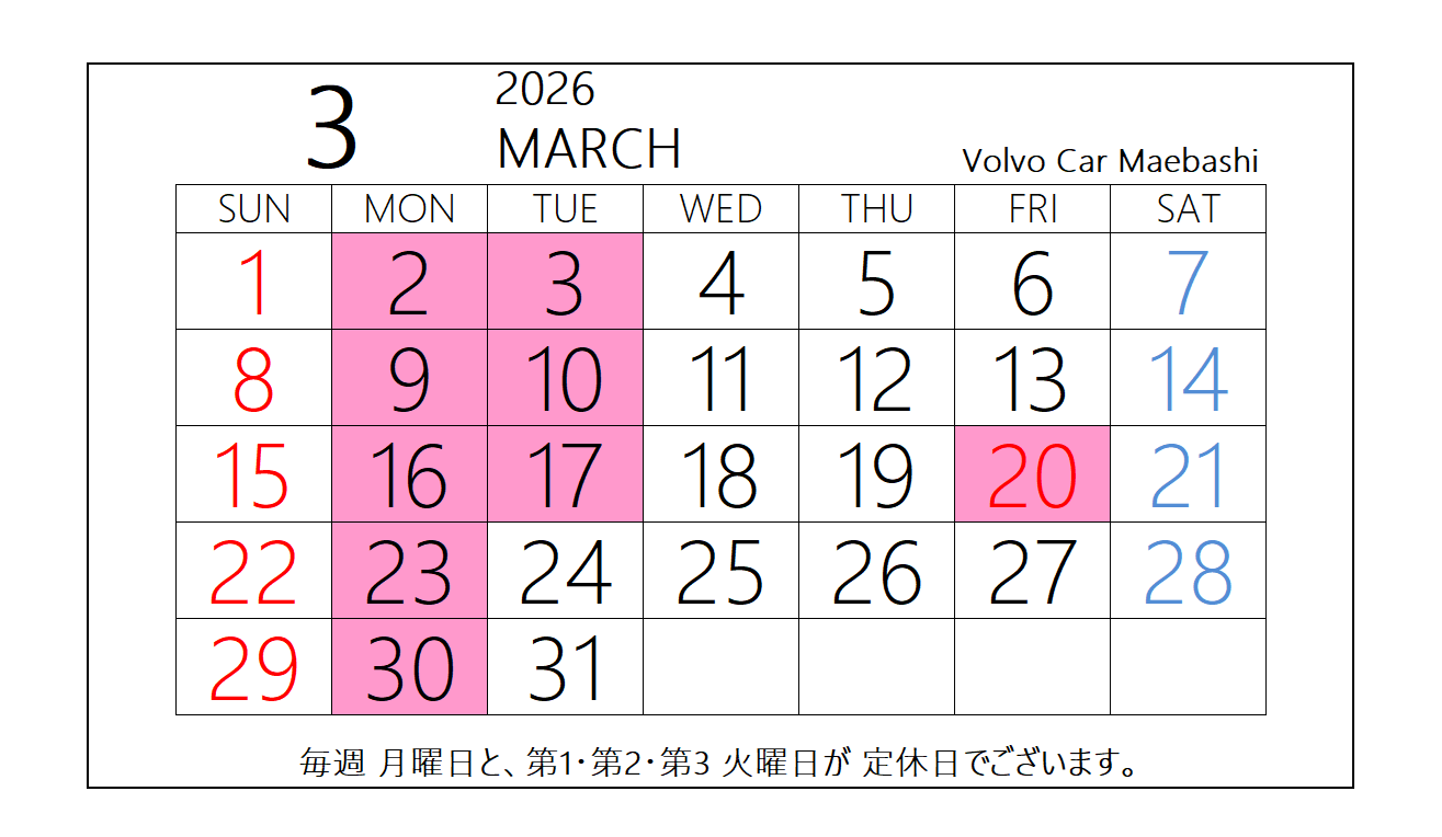 3月の営業日・休業日のお知らせ