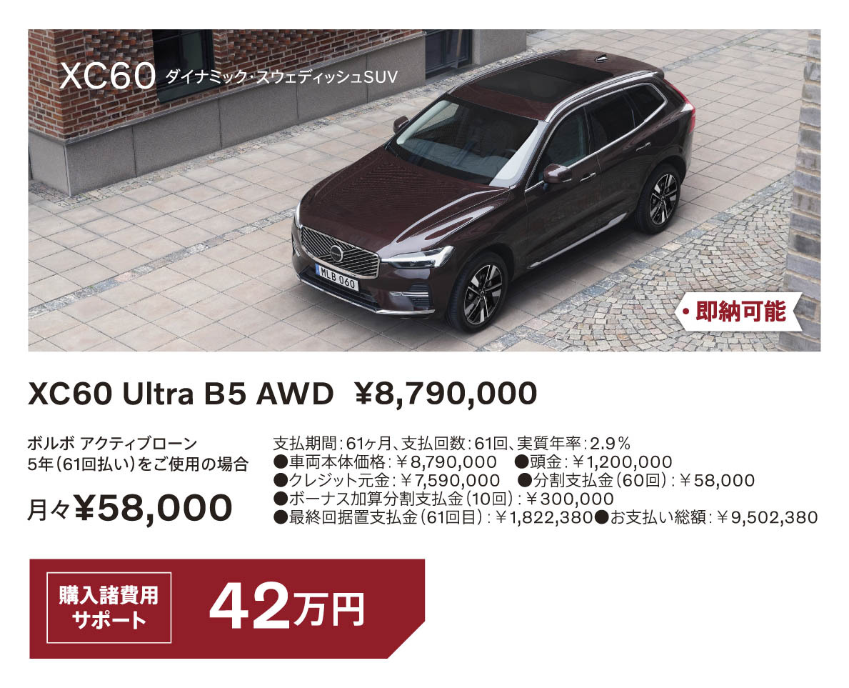 ホーム > 未分類 > 【今だけ】購入諸費用サポートキャンペーン 2026/02/14 こんにちは、武山です。 ただいま、ボルボでは 『購入諸費用サポートキャンペーン』を開催中です。 即納可能モデルも多数ご用意しておりますので ぜひお気軽にお問い合わせください。 B! LINEへ送る - 未分類