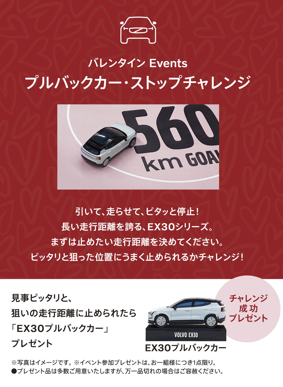 ホーム > 未分類 > 【Happy Valentine’s Fair】2/7~2/15 2026/02/06 皆さま、こんにちは。 ボルボ・カー小山では、 明日から、バレンタインフェアを開催いたします。 日程:2/7(土曜)~2/15(日曜) ご来店のお客様には、 チョコレートをご用意いたしております。 ※数に限りがございますので、なくなり次第終了となります。 また、EX30「プルバックカーストップチャレンジ」をご用意いたしております。 ご来場の際は、ぜひご参加ください。 B! LINEへ送る - 未分類