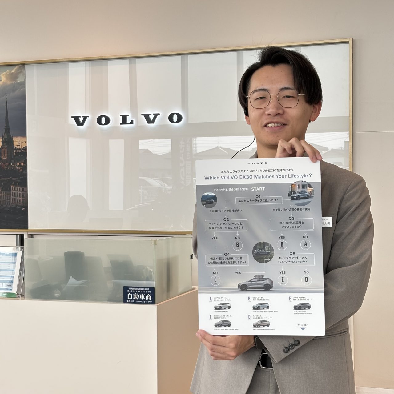 ホーム > 未分類 > 【3分でわかる、運命のEX30診断】 2026/02/12 皆さま、こんにちは。 ボルボ・カー小山のショールームに、 “あなたのライフスタイルにぴったりのEX30を見つけよう” という面白いパネルが到着しました。 簡単な質問に答えて進めていくと 5タイプあるEX30シリーズの中から あなたに合うEX30タイプが診断できちゃいます◎ ショールームにてぜひお試しください。 裏面には、 5タイプのシリーズの内容も載っていて 違いが分かりやすく比較できます! B! LINEへ送る - 未分類